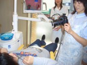 また、こちらでは、口腔内写真の撮影も行なっているということで、同行した設計士の尾崎さんに協力していただき、実際に撮影させてもらいました→→→