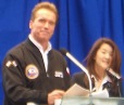 この日の目的地は「六本木ヒルズ」。はじめて行きました。やっぱりすごかったです。高いビルが普通にたくさん建っていました。テレビ朝日などいろいろ見てまわりましたが、そこでいちばんうれしかったのは・・・シュワちゃんです!!!!!芸能人に会えないかなぁーとは思っていましたが、よりによってシュワちゃんに会えるとは・・・。知事として、州のアピールをしていたシュワ知事はかっこよかったです。